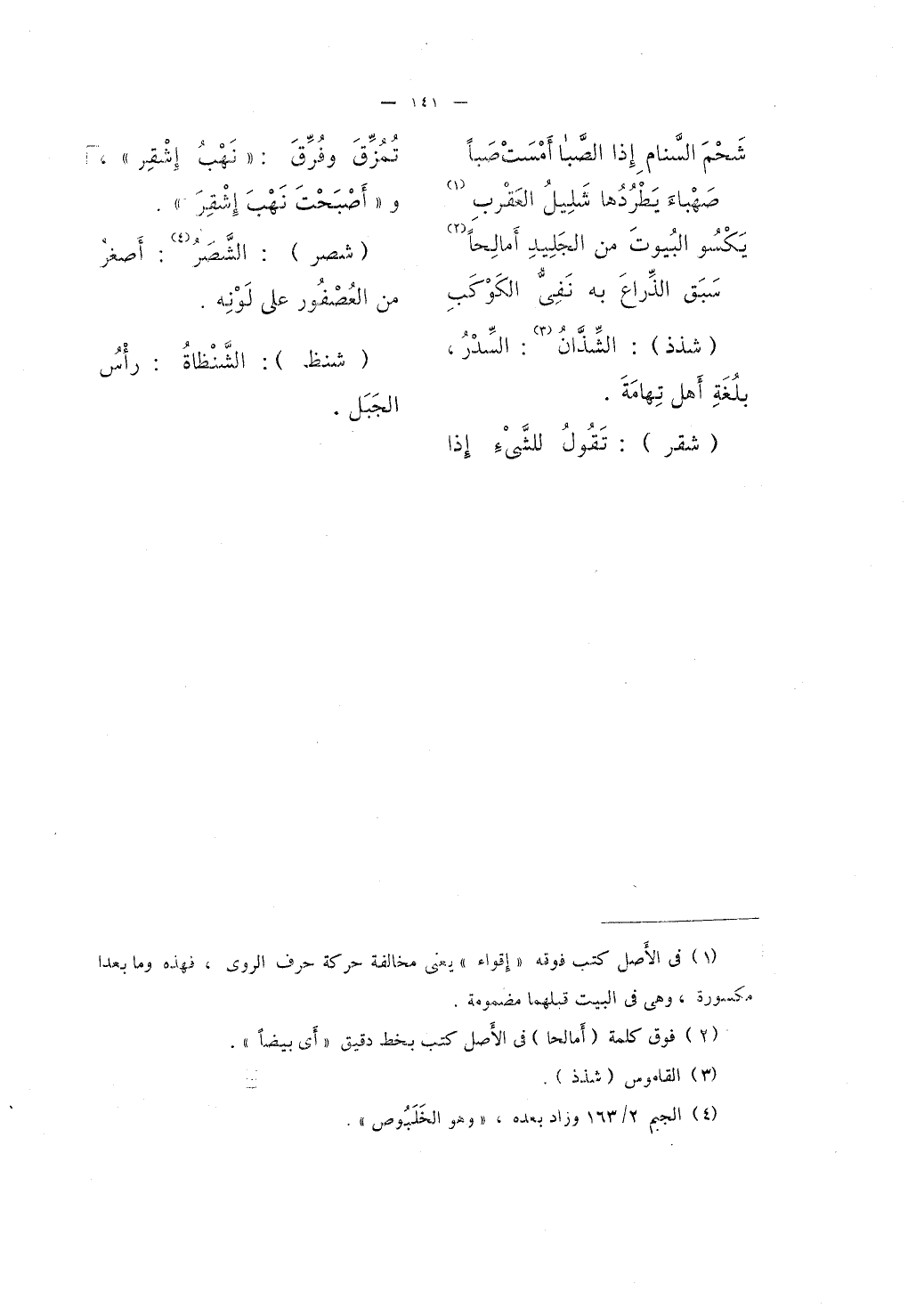 شَحْمَ السَّنام إذا الصَّبا أَمْسَتْ صَبأ ... صَهْباءَ يْطرُدُها شَلِيلُ العَقْربِ