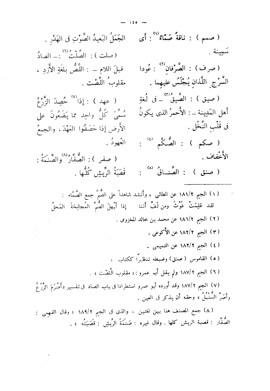 (صفر) : الصُّفَّارُ والصَّنَمَةُ: قَصَبَةُ الرِّيشِ كُلُّها.