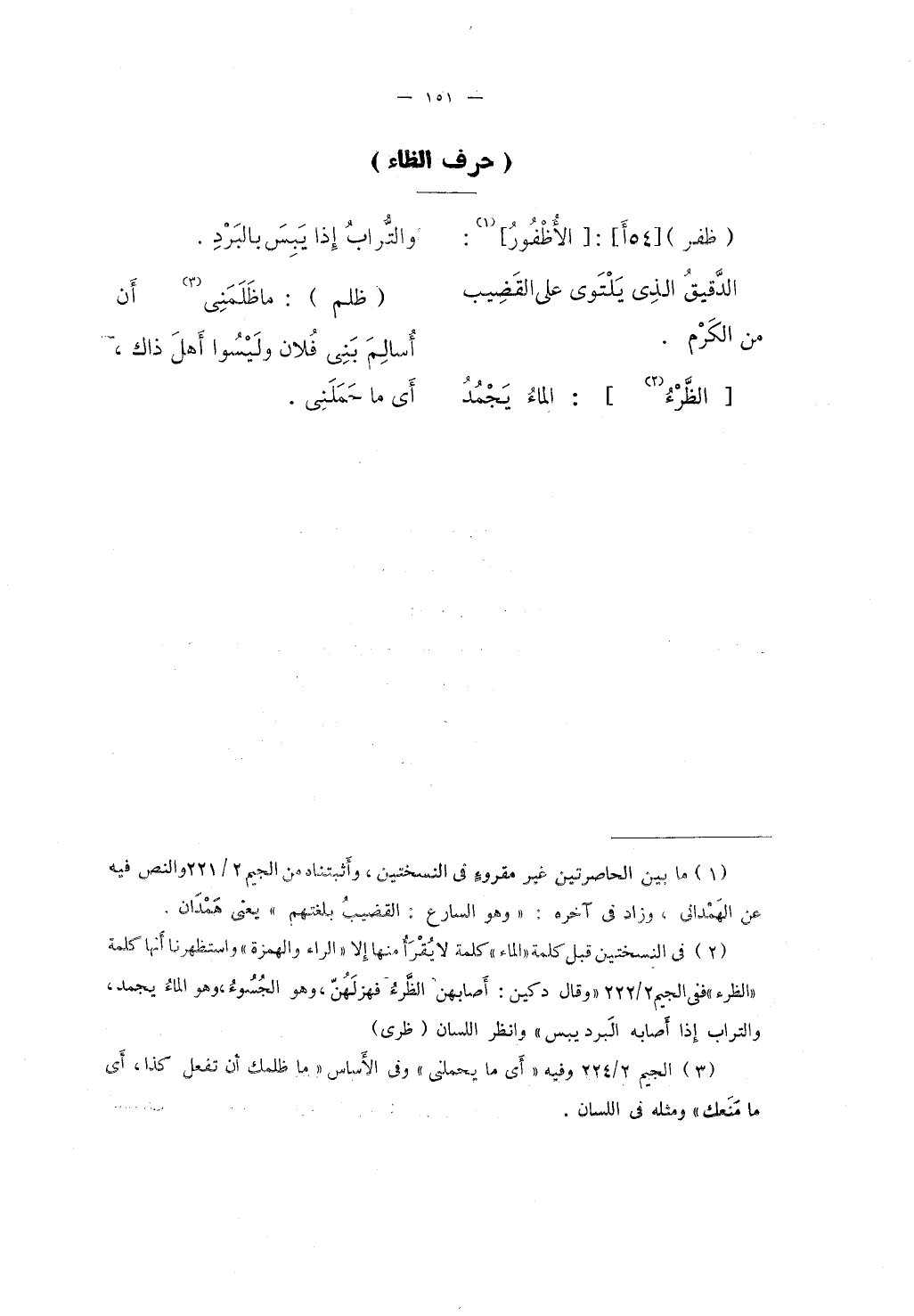 [الظَّرْءُ] : الماءُ يَجْمُدُ والتُّرابُ إذا يَبِسَ بالبَرْدِ.