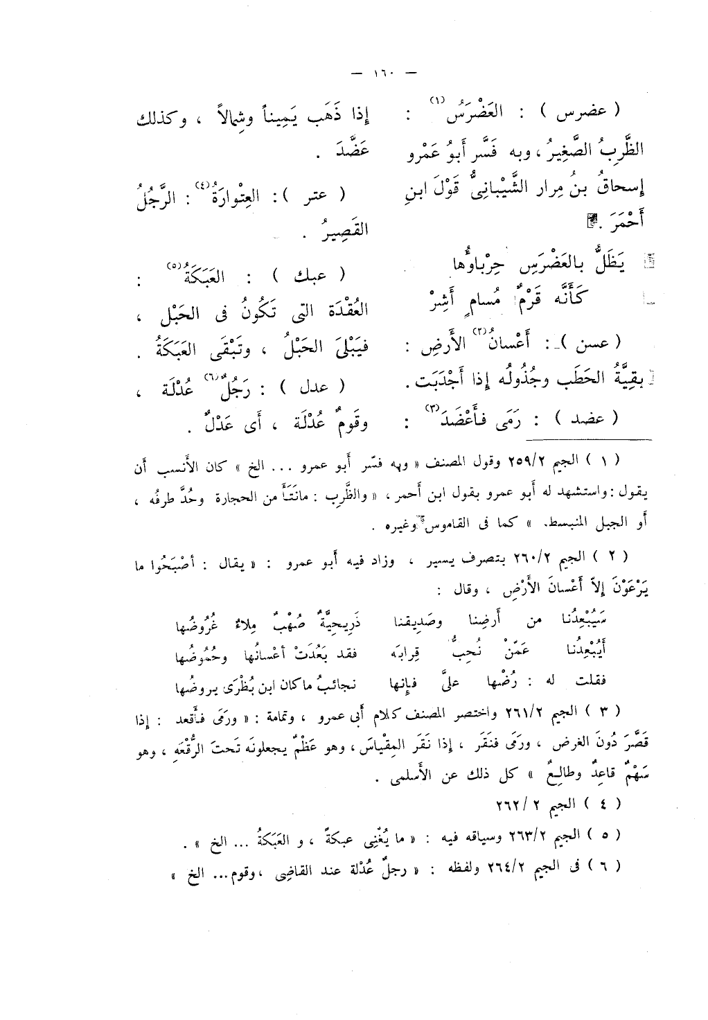 (عضرس) : العَضْرَسُ: الظَّرِبُ الصَّغِيرُ، وبه فَسَّر أَبوُ عَمْر إِسحاقُ بنُ مِرار الشًّيْبانِيُّ قَوْلَ ابنِ أَحْمَرَ.