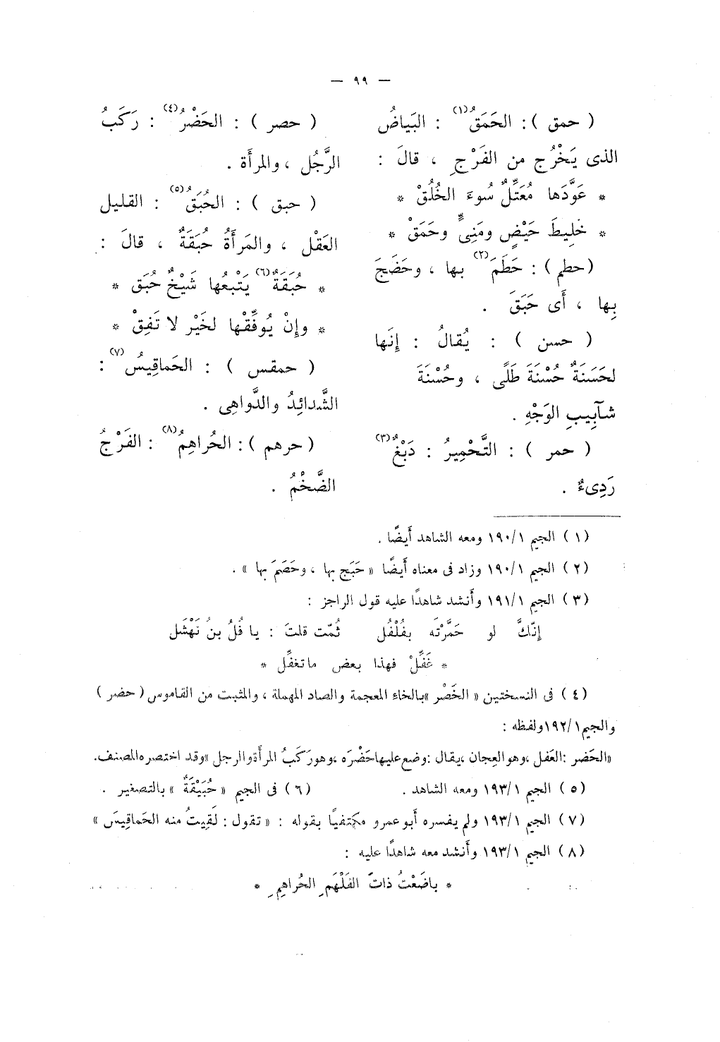 (حمق) : الحَمَقُ: البَياضُ الذي يَخْرُج من الفَرْجِ، قالَ: