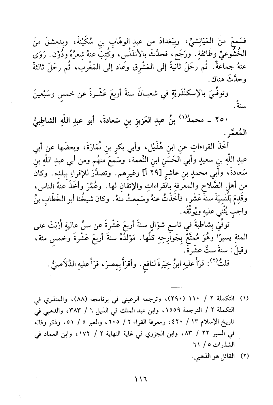 250 - محمد 1 بن عبد العزيز بن سعادة، أبو عبد اللّه الشاطبيّ