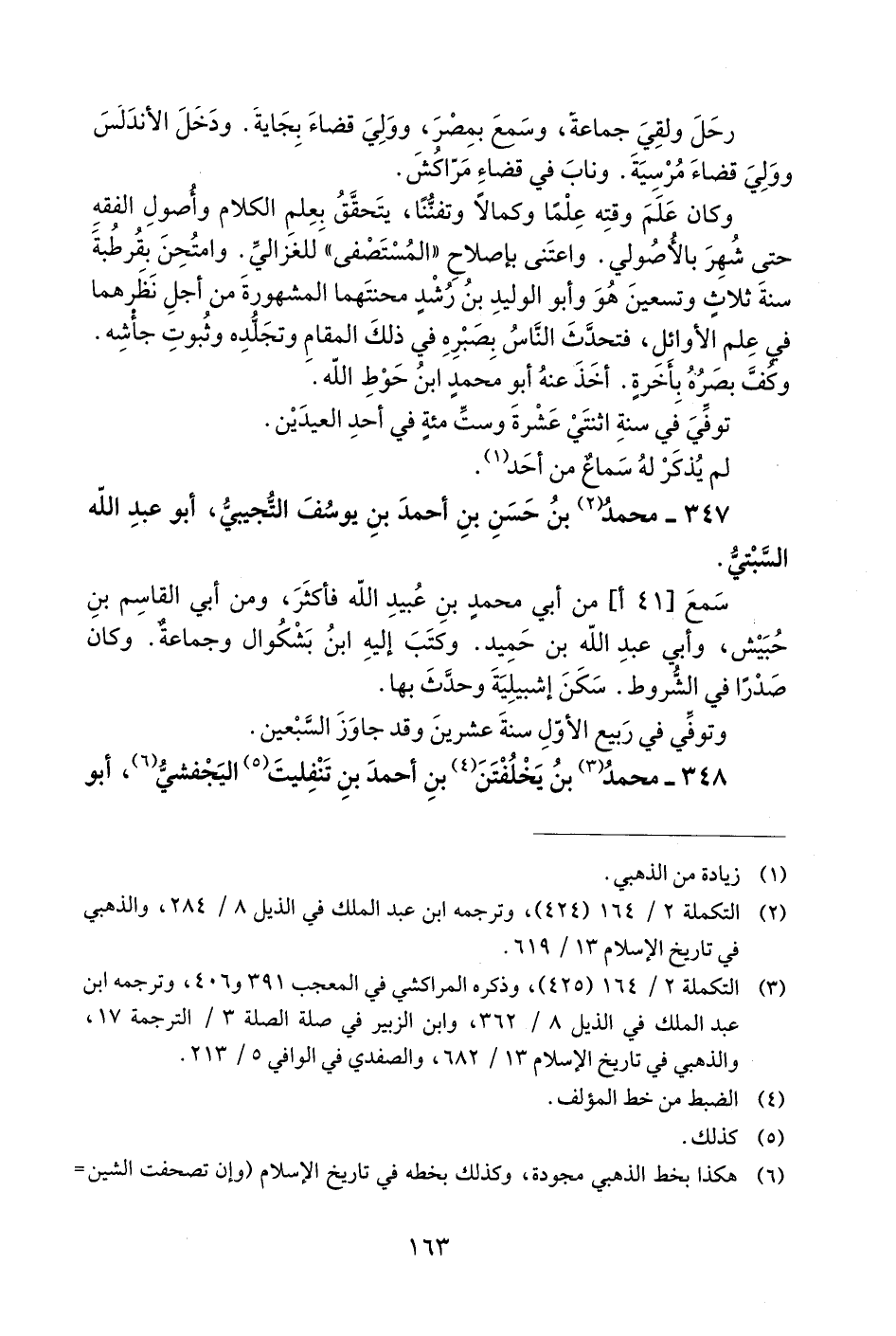 6) هكذا بخط الذهبي مجودة، وكذلك بخطه في تاريخ الإسلام (وإن تصحفت الشين = [إلى ثاء مثلته من غلط الطبع»، وفي المطبوع من التكملة: «التجيبي» محرفة بلا ريب، وفي الوافي للصفدي: «الحبشي» محرفة أيضا. وفي تعليق الدكتور محمد بن شريفة على ترجمته من الذيل أنه «يجبشي» وهو موافق لما جاء في تقييد الذهبي بعد قلب «الباء» الأجنبية إلى فاء، وهو معروف في التعريب.] (**)