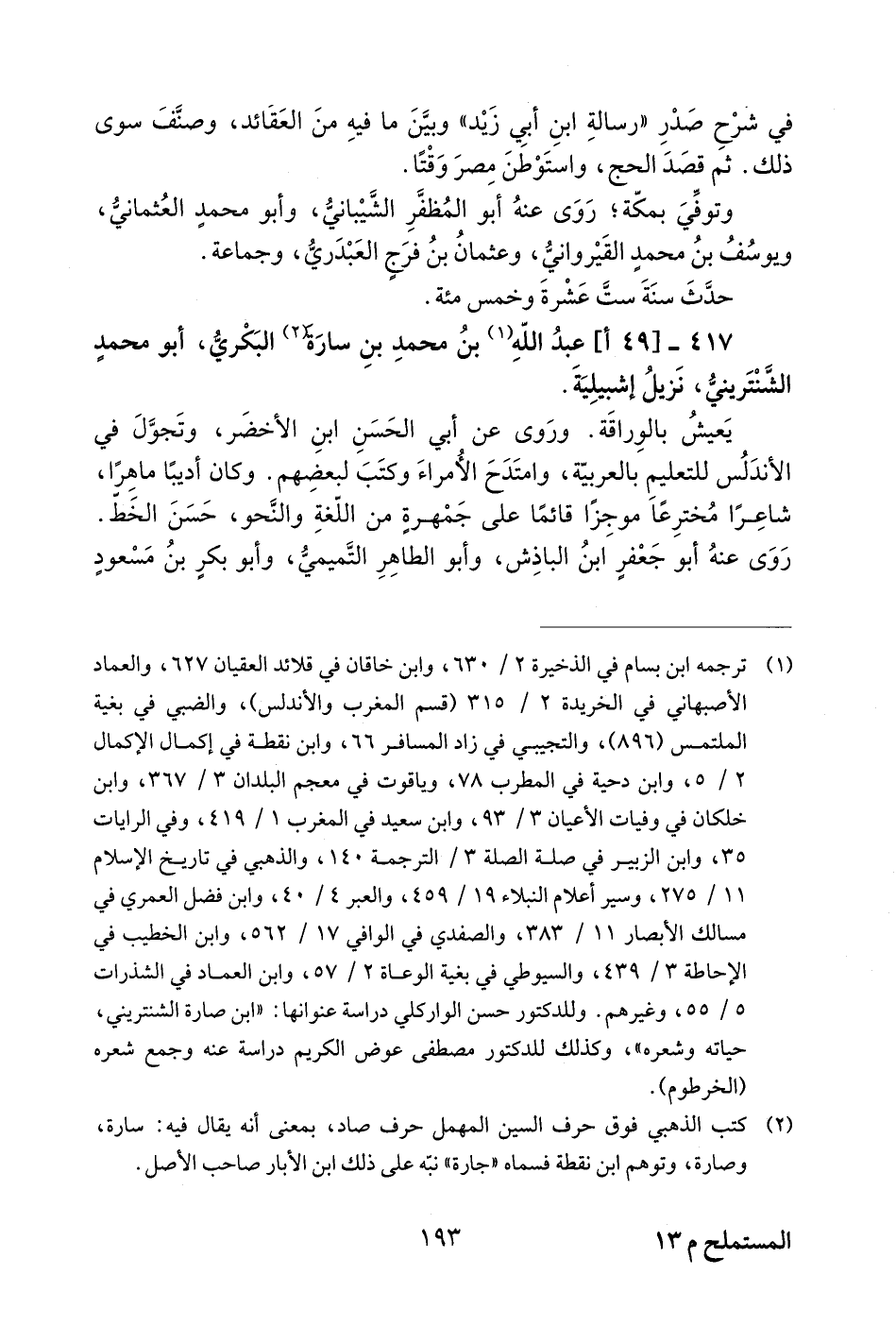 417 - [49 أ] عبد اللّه 1 بن محمد بن سارة 2 البكريّ، أبو محمد