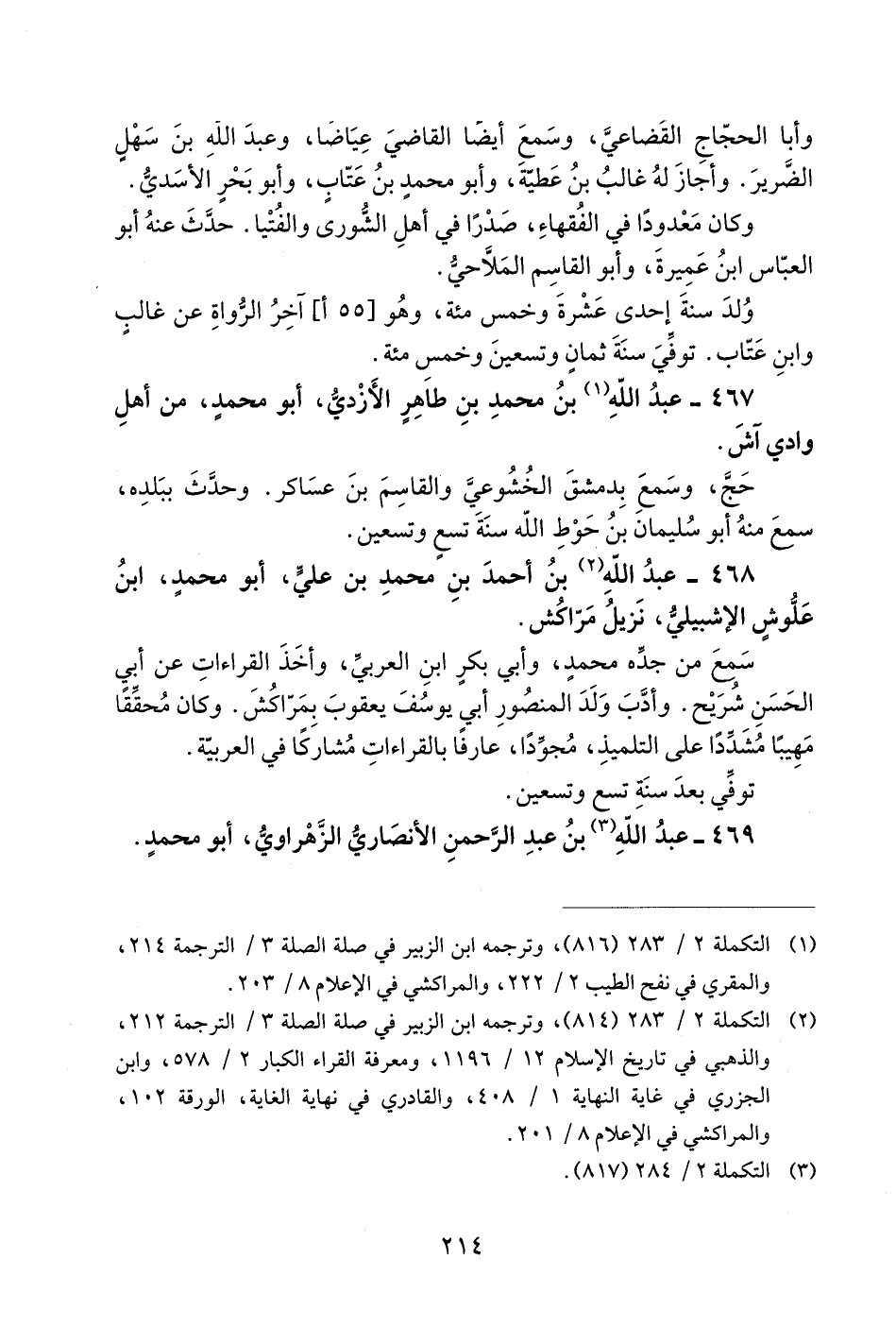 469 - عبد اللّه 3 بن عبد الرّحمن الأنصاريّ الزّهراويّ، أبو محمد.