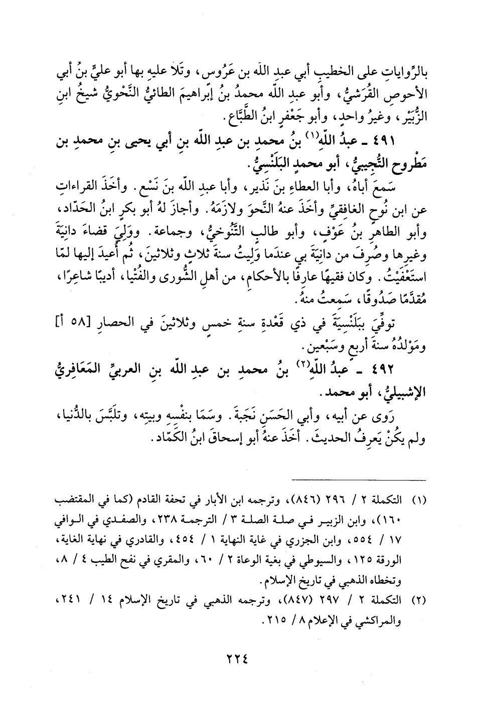 492 - عبد اللّه 2 بن محمد بن عبد اللّه بن العربيّ المعافريّ