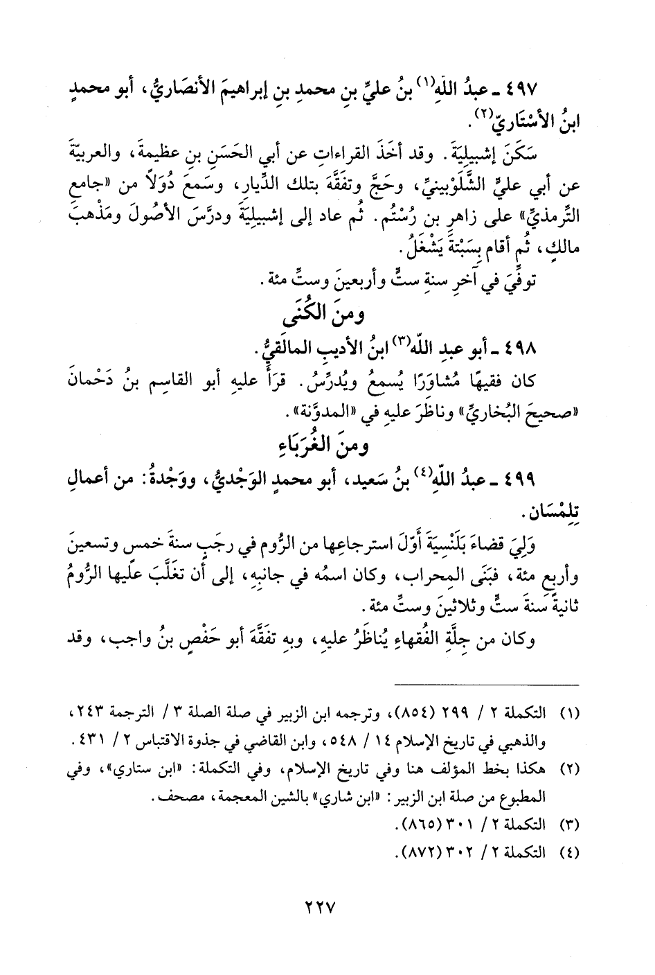 2) هكذا بخط المؤلف هنا وفي تاريخ الإسلام، وفي التكملة: «ابن ستاري»، وفي المطبوع من صلة ابن الزبير: «ابن شاري» بالشين المعجمة، مصحف.
