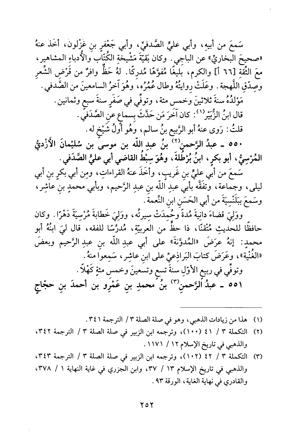 3) التكملة 3/ 42 (102)، وترجمه ابن الزبير في صلة الصلة 3 /الترجمة 343، والذهبي في تاريخ الإسلام 13/ 37، وابن الجزري في غاية النهاية 1/ 378، والقادري في نهاية الغاية، الورقة 93.