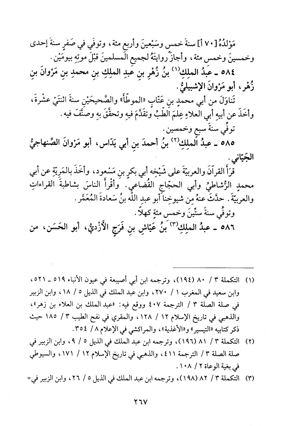 1) التكملة 3/ 80 (194)، وترجمه ابن أبي أصيبعة في عيون الأنباء 519 - 521، وابن سعيد في المغرب 1/ 270، وابن عبد الملك في الذيل 5/ 18، وابن الزبير في صلة الصلة 3 /الترجمة 407 ووقع فيه: «عبد الملك بن العلاء بن زهر»، والذهبي في تاريخ الإسلام 12/ 128، والمقري في نفح الطيب 3/ 185 حيث ذكر كتابيه «التيسير» و«الأغذية»، والمراكشي في الإعلام 8/ 354.