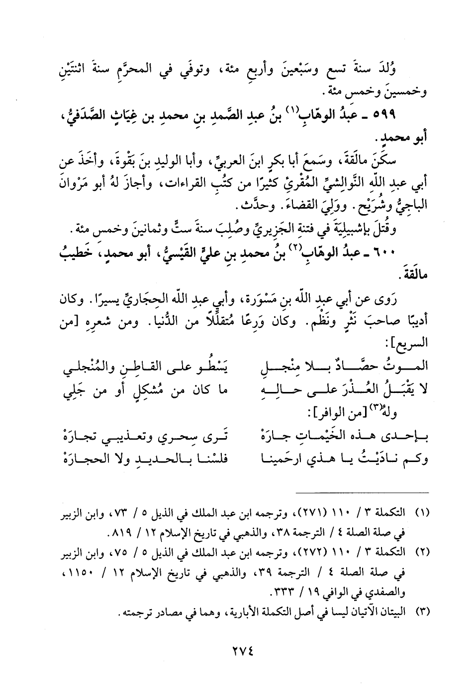 3) البيتان الآتيان ليسا في أصل التكملة الأبارية، وهما في مصادر ترجمته.