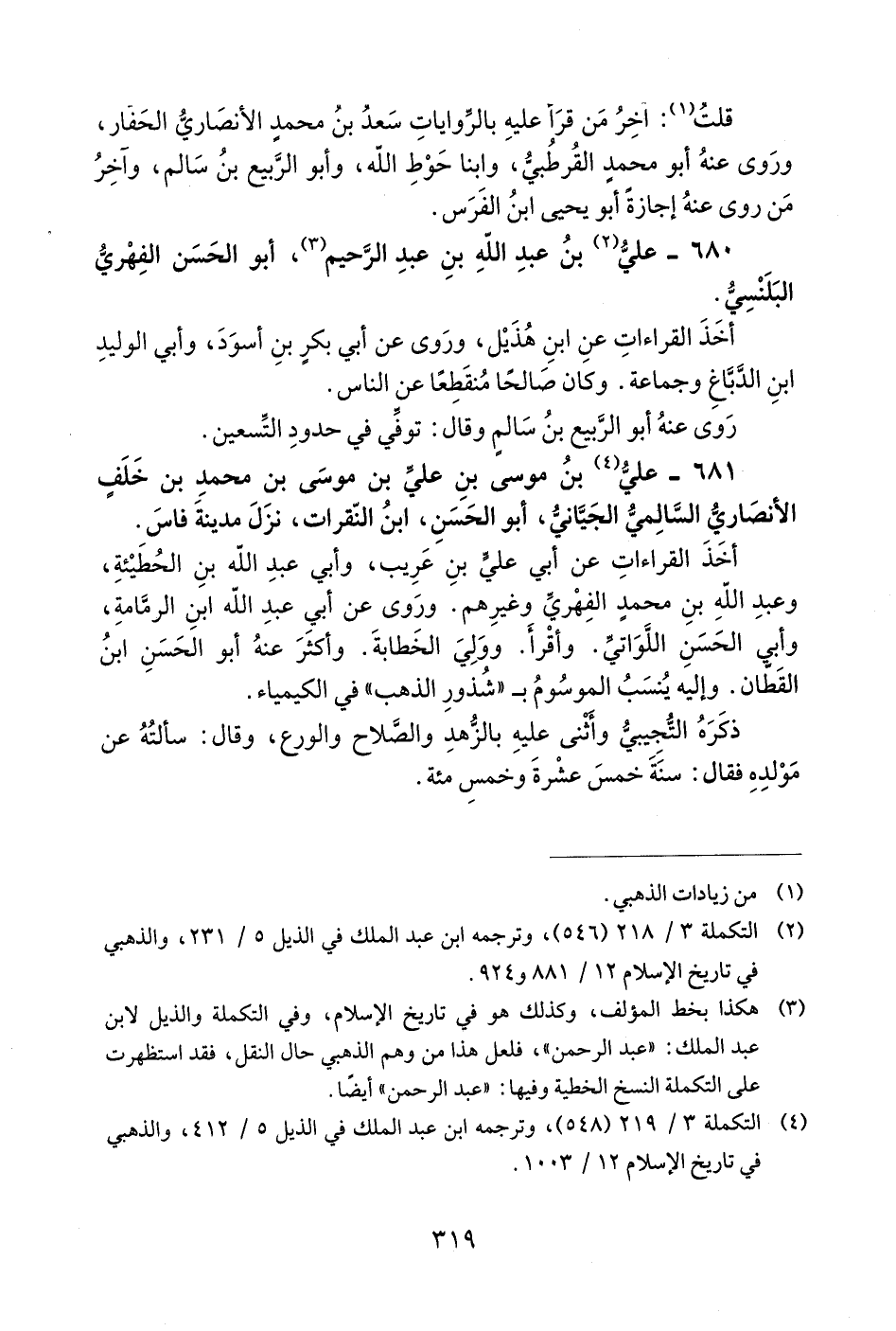 3) هكذا بخط المؤلف، وكذلك هو في تاريخ الإسلام، وفي التكملة والذيل لابن عبد الملك: «عبد الرحمن»، فلعل هذا من وهم الذهبي حال النقل، فقد استظهرت على التكملة النسخ الخطية وفيها: «عبد الرحمن» أيضا.