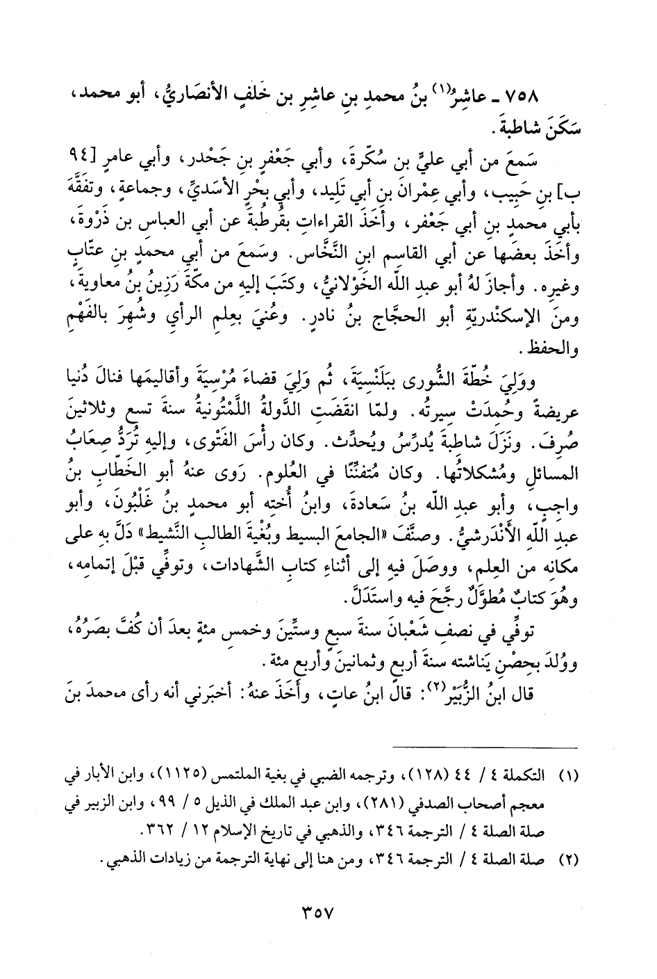 2) صلة الصلة 4 /الترجمة 346، ومن هنا إلى نهاية الترجمة من زيادات الذهبي.