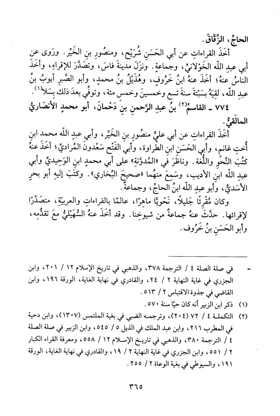 = في صلة الصلة 4 /الترجمة 378، والذهبي في تاريخ الإسلام 12/ 201، وابن الجزري في غاية النهاية 2/ 24، والقادري في نهاية الغاية، الورقة 196، وابن القاضي في جذوة الاقتباس 2/ 513.
