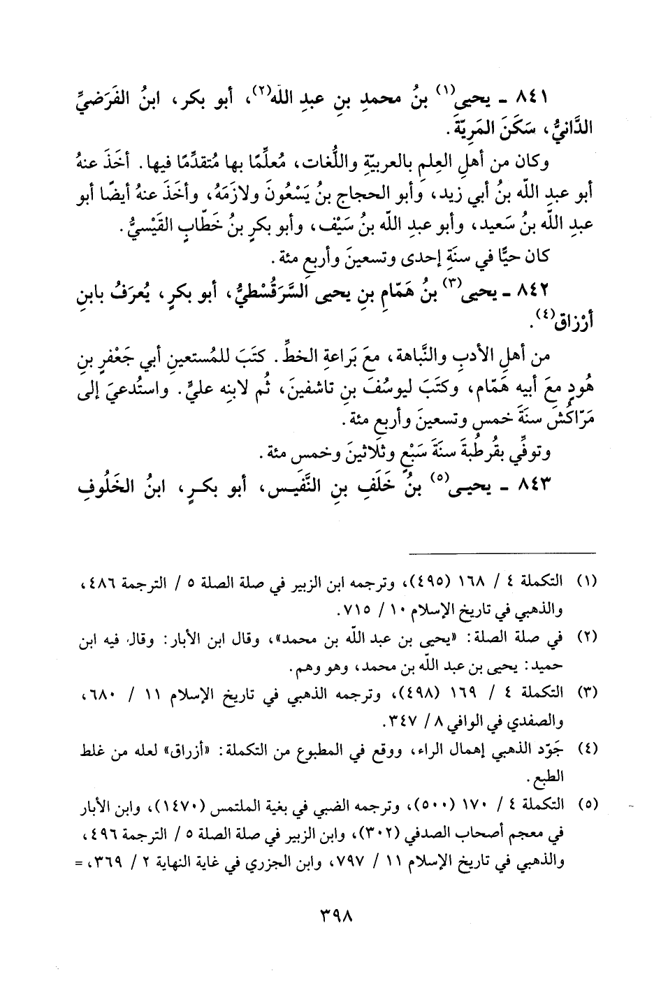 842 - يحيى 3 بن همّام بن يحيى السّرقسطيّ، أبو بكر، يعرف بابن