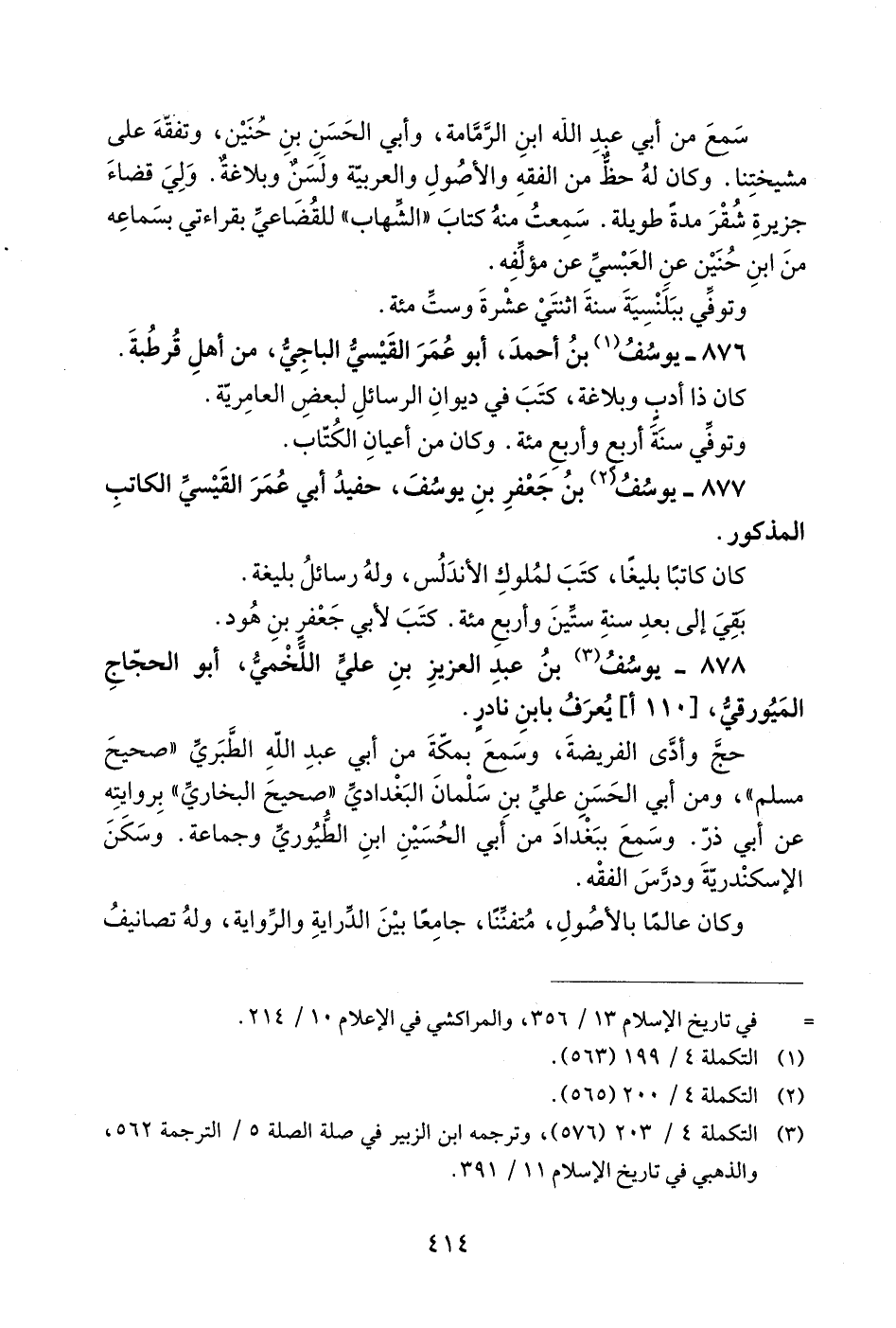 876 - يوسف 1 بن أحمد، أبو عمر القيسيّ الباجيّ، من أهل قرطبة.