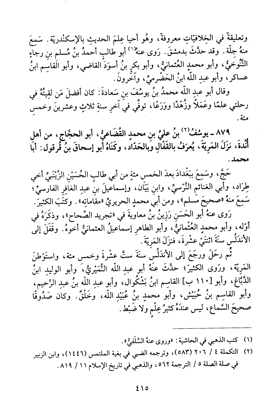 2) التكملة 4/ 206 (583)، وترجمه الضبي في بغية الملتمس (1446)، وابن الزبير في صلة الصلة 5 /الترجمة 562، والذهبي في تاريخ الإسلام 11/ 819.