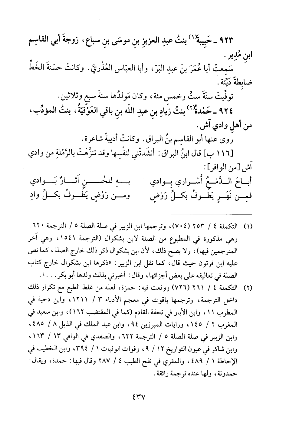 923 - حبيبة 1 بنت عبد العزيز بن موسى بن سباع، زوجة أبي القاسم