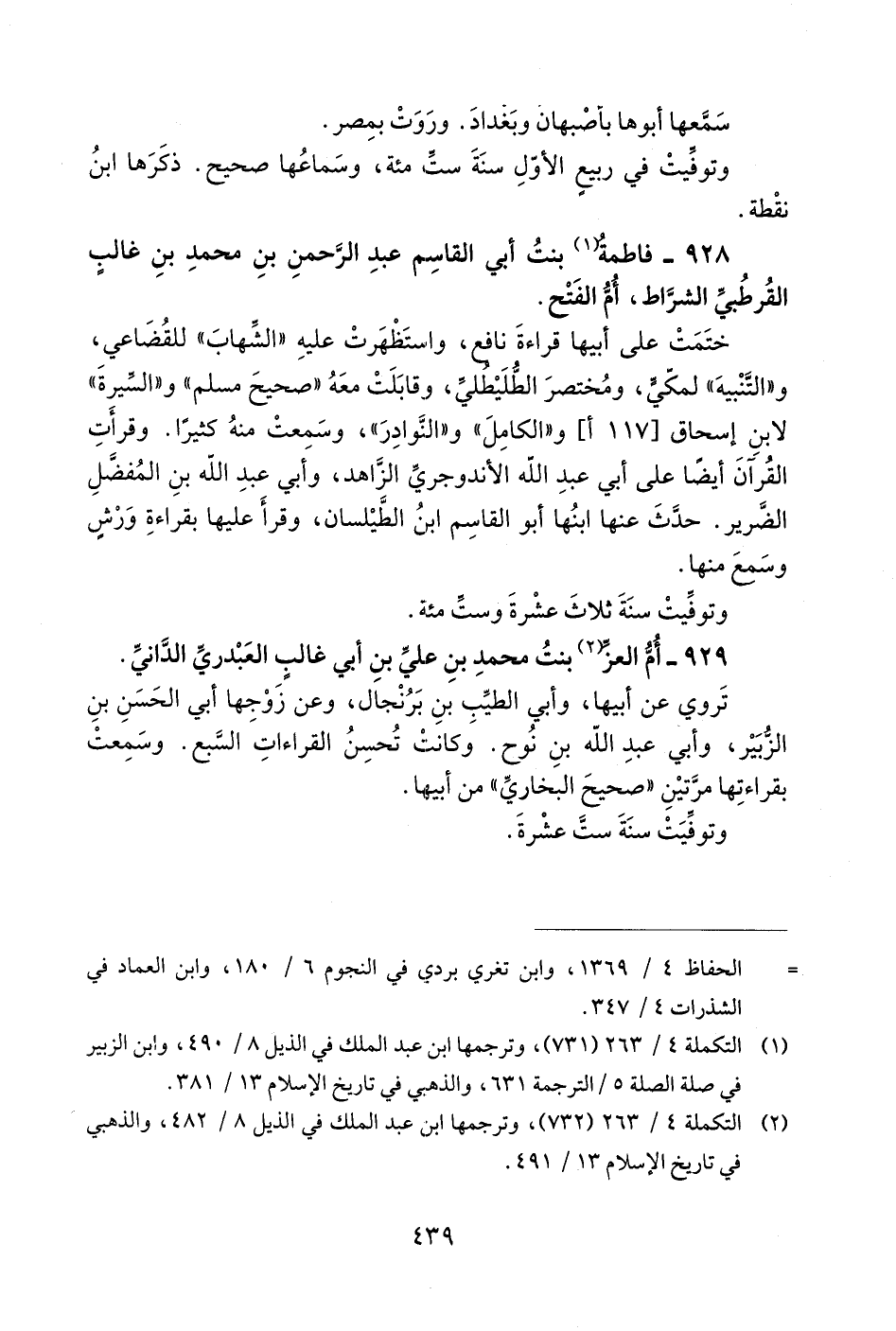929 - أمّ العزّ 2 بنت محمد بن عليّ بن أبي غالب العبدريّ الدّانيّ.
