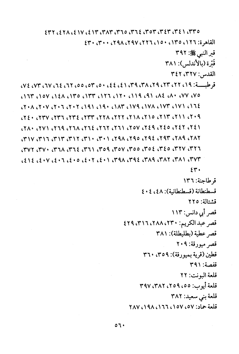 قرطبة: 19، 22، 23، 29، 38، 39، 41، 44، 50، 53، 55، 62، 64، 67، 73، 74، 75، 77، 80، 84، 91، 119، 120، 126، 133، 135، 148، 157، 163، 164، 171، 173، 178، 179، 183، 190، 191، 202، 206، 207، 208، 209، 211، 213، 215، 218، 222، 228، 233، 234، 236، 237، 240، 241، 242، 245، 249، 257، 261، 262، 264، 268، 269، 271، 280، 282، 289، 293، 294، 295، 298، 301، 310، 312، 313، 316، 317، 326، 327، 345، 354، 355، 357، 359، 361، 364، 368، 370، 372، 373، 381، 382، 389، 394، 398، 401، 402، 405، 406، 407، 414، 430