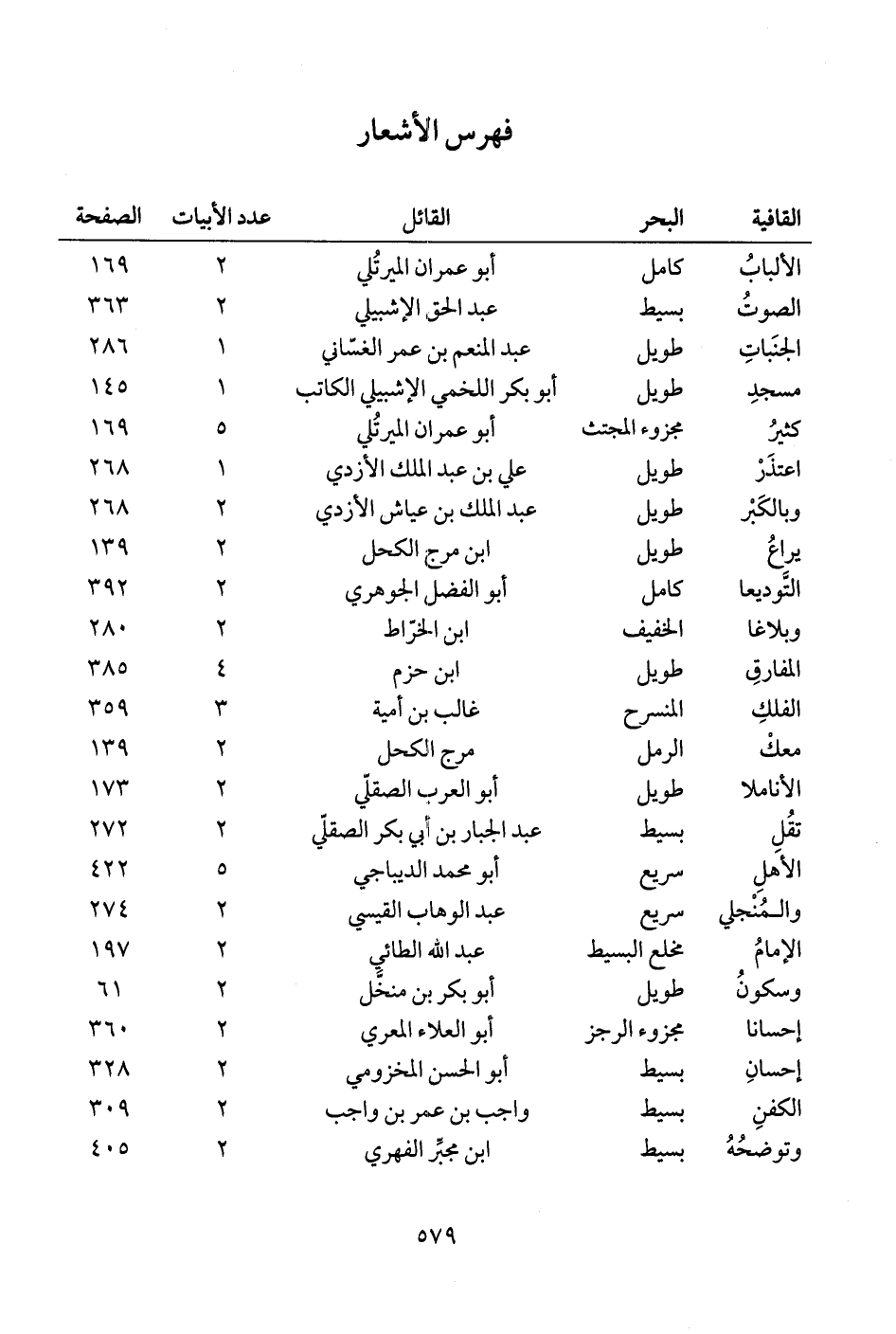 فهرس الأشعار