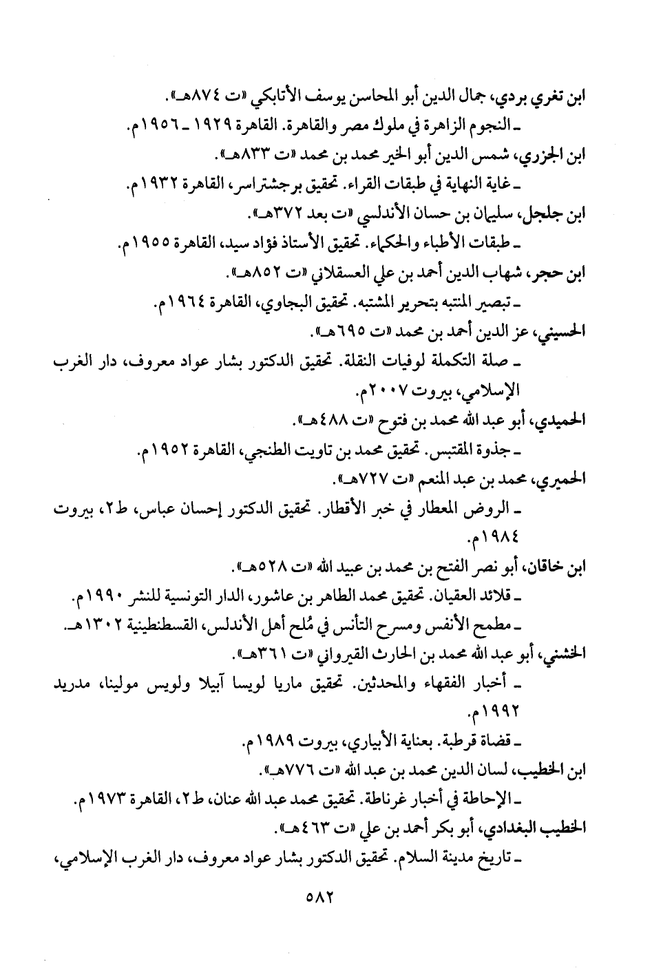 - الروض المعطار في خبر الأقطار. تحقيق الدكتور إحسان عباس، ط 2، بيروت 1984 م.