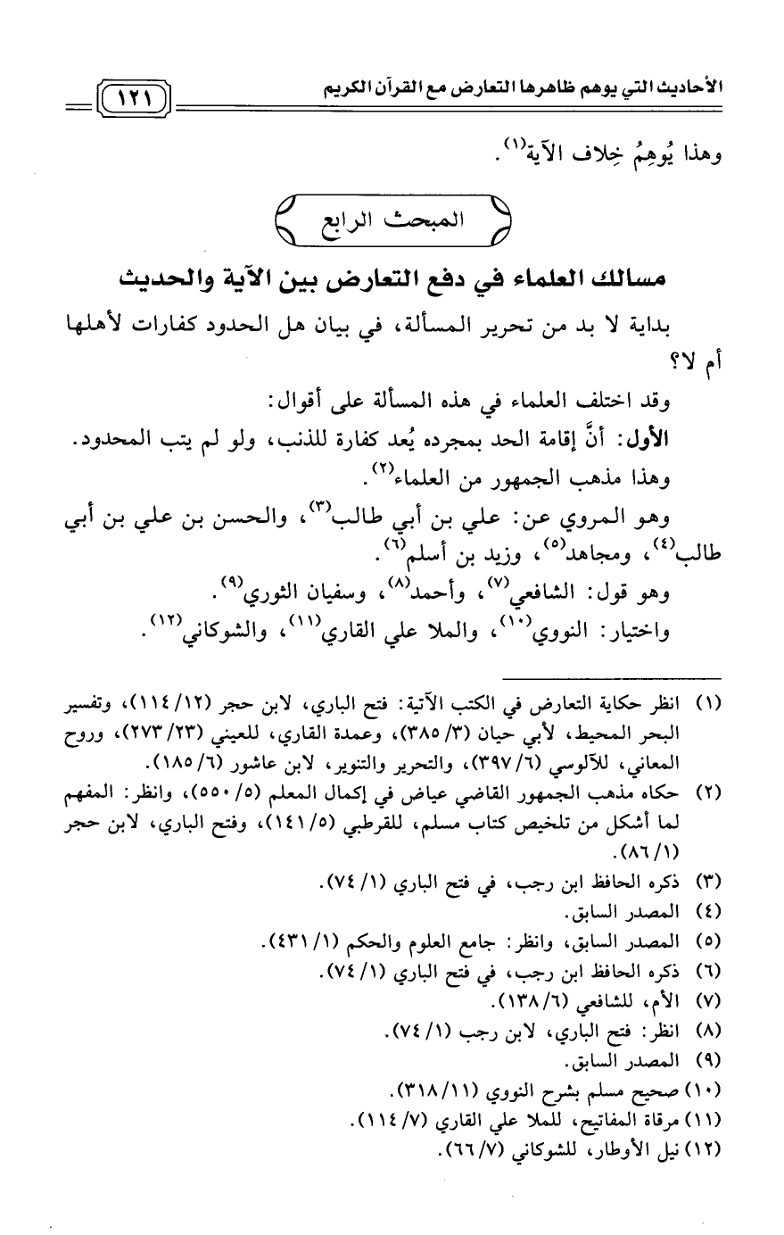 (¬1) انظر حكاية التعارض في الكتب الآتية: فتح الباري، لابن حجر (12/ 114)، وتفسير البحر المحيط، لأبي حيان (3/ 385)، وعمدة القاري، للعيني (23/ 273)، وروح المعاني، للآلوسي (6/ 397)، والتحرير والتنوير، لابن عاشور (6/ 185).