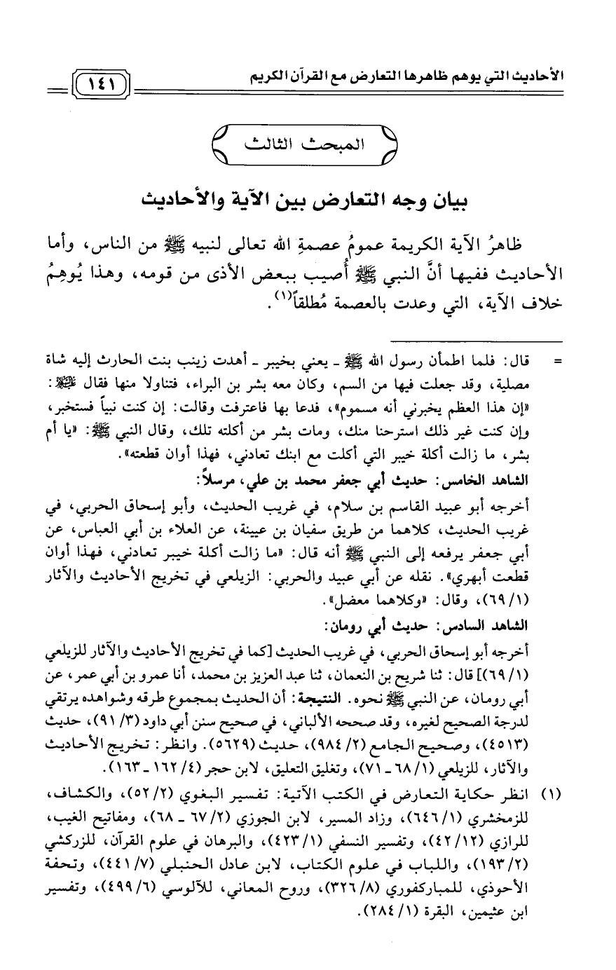 (¬1) انظر حكاية التعارض في الكتب الآتية: تفسير البغوي (2/ 52)، والكشاف، للزمخشري (1/ 646)، وزاد المسير، لابن الجوزي (2/ 67 - 68)، ومفاتيح الغيب، للرازي (12/ 42)، وتفسير النسفي