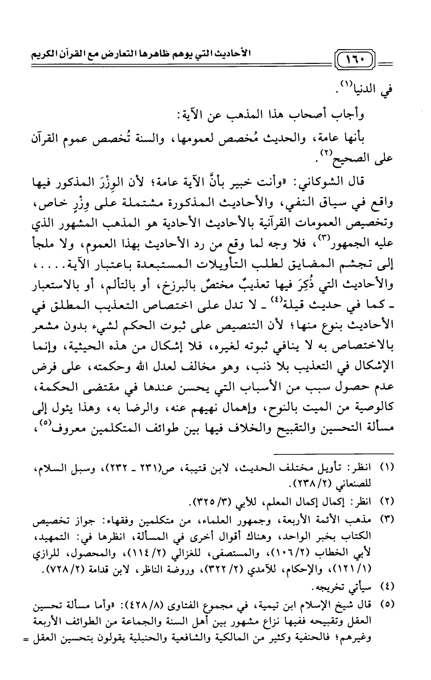(¬6) قال شيخ الإسلام ابن تيمية، في مجموع الفتاوى (8/ 428): "وأما مسألة تحسين العقل وتقبيحه ففيها نزاع مشهور بين أهل السنة والجماعة من الطوائف الأربعة وغيرهم؛ فالحنفية وكثير من المالكية والشافعية والحنبلية يقولون بتحسين العقل =