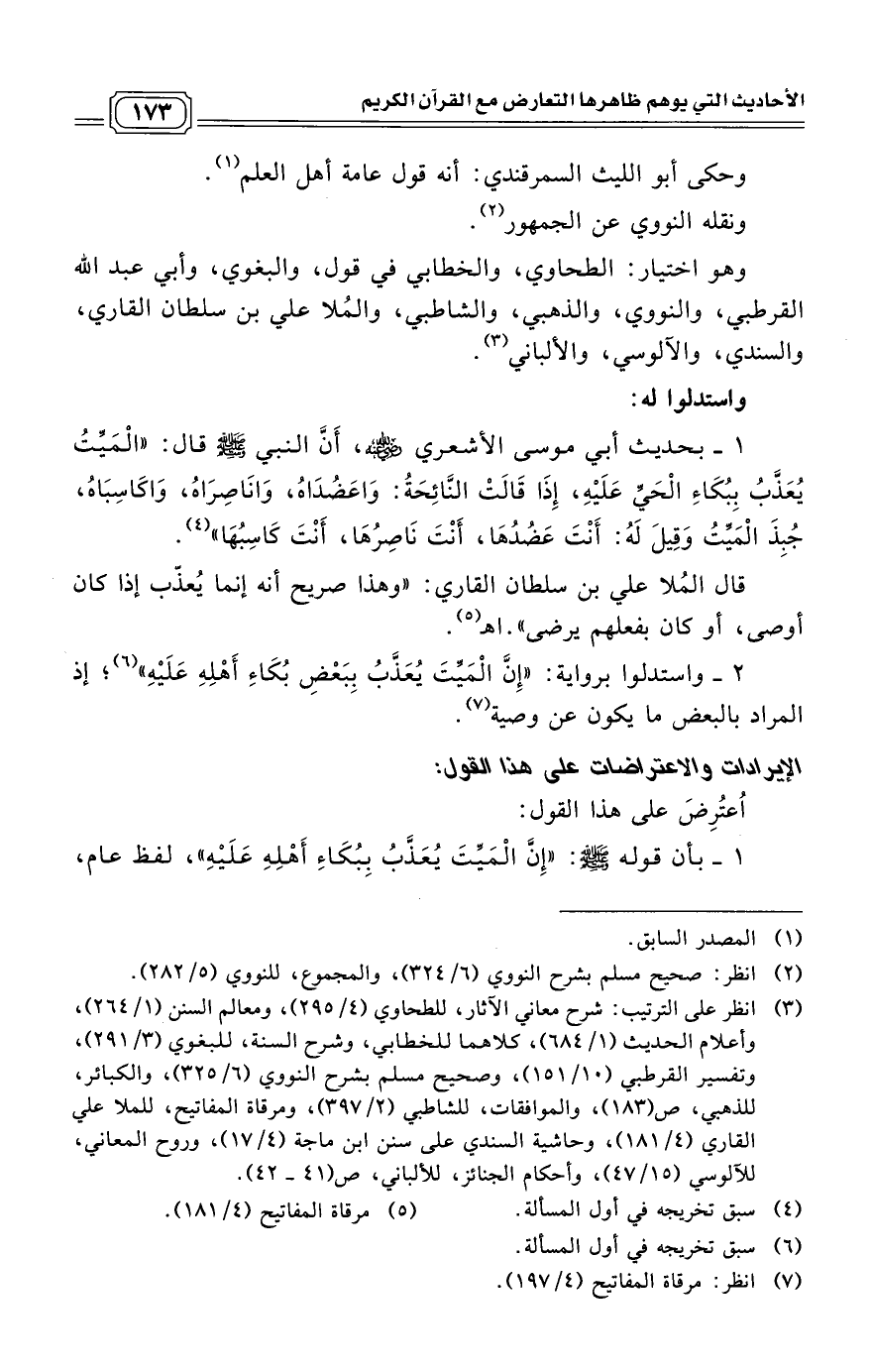 (10/ 151)، وصحيح مسلم بشرح النووي (6/ 325)، والكبائر، للذهبي، ص (183)، والموافقات، للشاطبي (2/ 397)، ومرقاة المفاتيح، للملا علي القاري (4/ 181)، وحاشية السندي على سنن ابن ماجة (4/ 17)، وروح المعاني، للآلوسي (15/ 47)، وأحكام الجنائز، للألباني، ص (41 - 42).