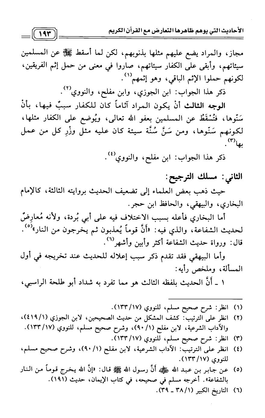 (¬4) انظر على الترتيب: الآداب الشرعية، لابن مفلح (1/ 90)، وشرح صحيح مسلم، للنووي (17/ 133).