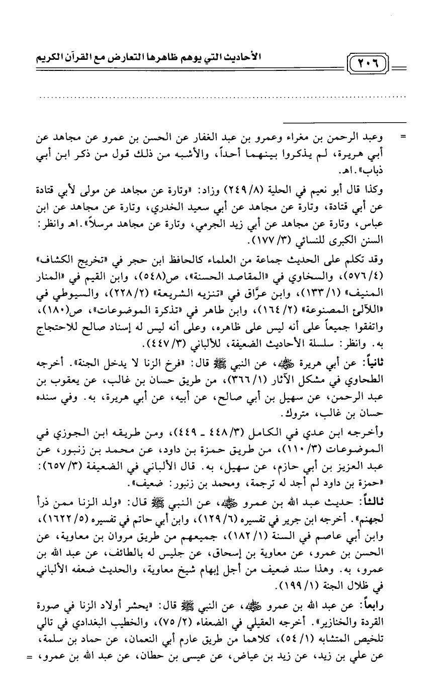 ثالثاً: حديث عبد الله بن عمرو رضي الله عنه، عن النبي صلى الله عليه وسلم قال: "ولد الزنا ممن ذرأ لجهنم".