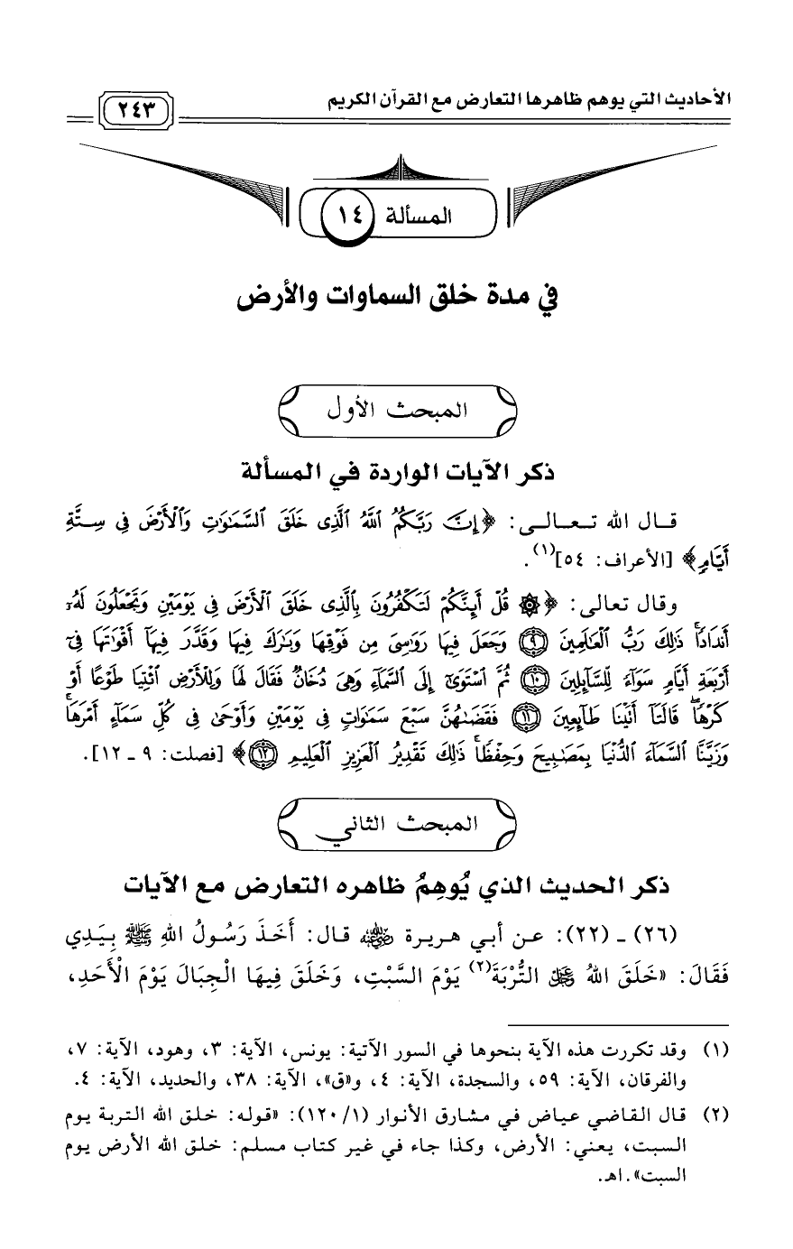 (26) ـ (22): عن أبي هريرة - رضي الله عنه - قال: أَخَذَ رَسُولُ اللَّهِ - صلى الله عليه وسلم - بِيَدِي فَقَالَ: "خَلَقَ اللَّهُ عَزَّ وَجَلَّ التُّرْبَةَ (¬2) يَوْمَ السَّبْتِ، وَخَلَقَ فِيهَا الْجِبَالَ يَوْمَ الْأَحَدِ،