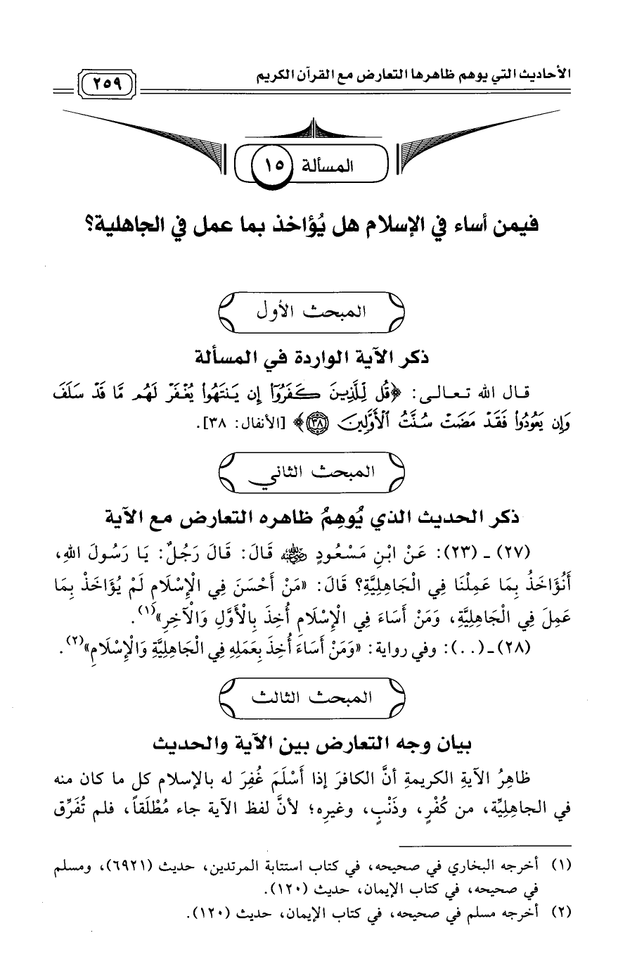 المسألة [15]: فيمن أساء في الإسلام هل يُؤاخذ بما عمل في الجاهلية؟