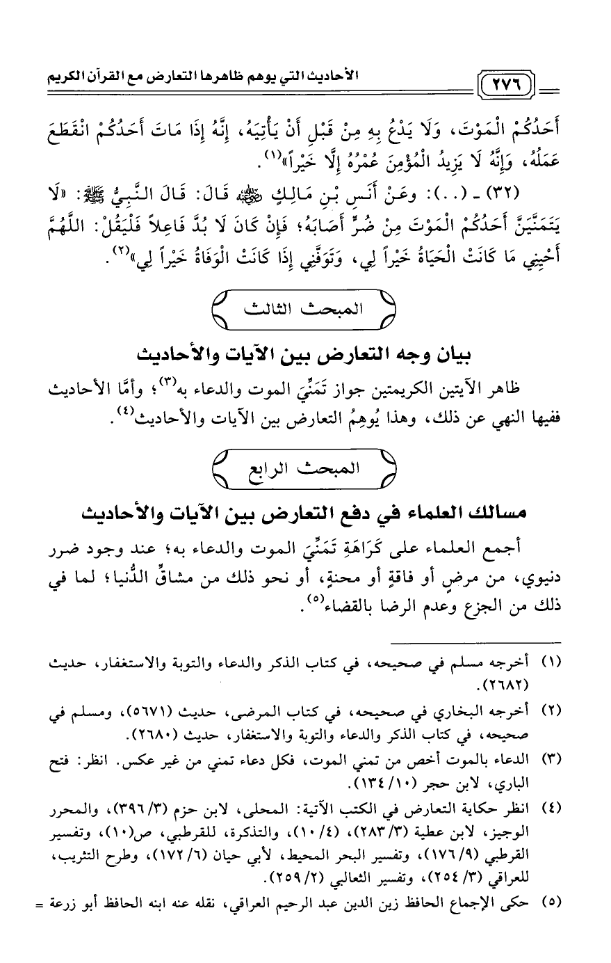 (¬3) الدعاء بالموت أخص من تمني الموت، فكل دعاء تمني من غير عكس. انظر: فتح الباري، لابن حجر