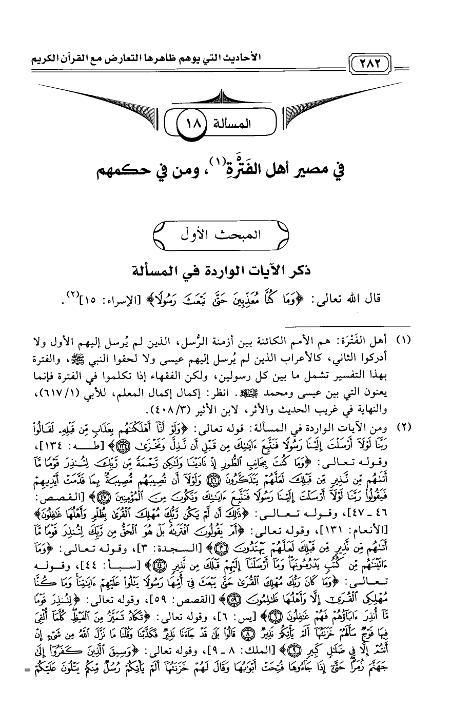 المسألة [18]: في مصير أهل الفَتْرَةِ (¬1)، ومن في حكمهم.