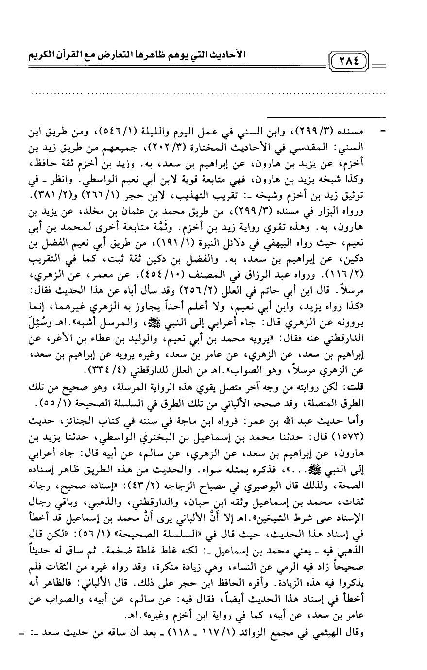 = مسنده (3/ 299)، وابن السني في عمل اليوم والليلة (1/ 546)، ومن طريق ابن السني: المقدسي في الأحاديث المختارة (3/ 202)، جميعهم من طريق زيد بن أخزم، عن يزيد بن هارون، عن إبراهيم بن سعد، به.