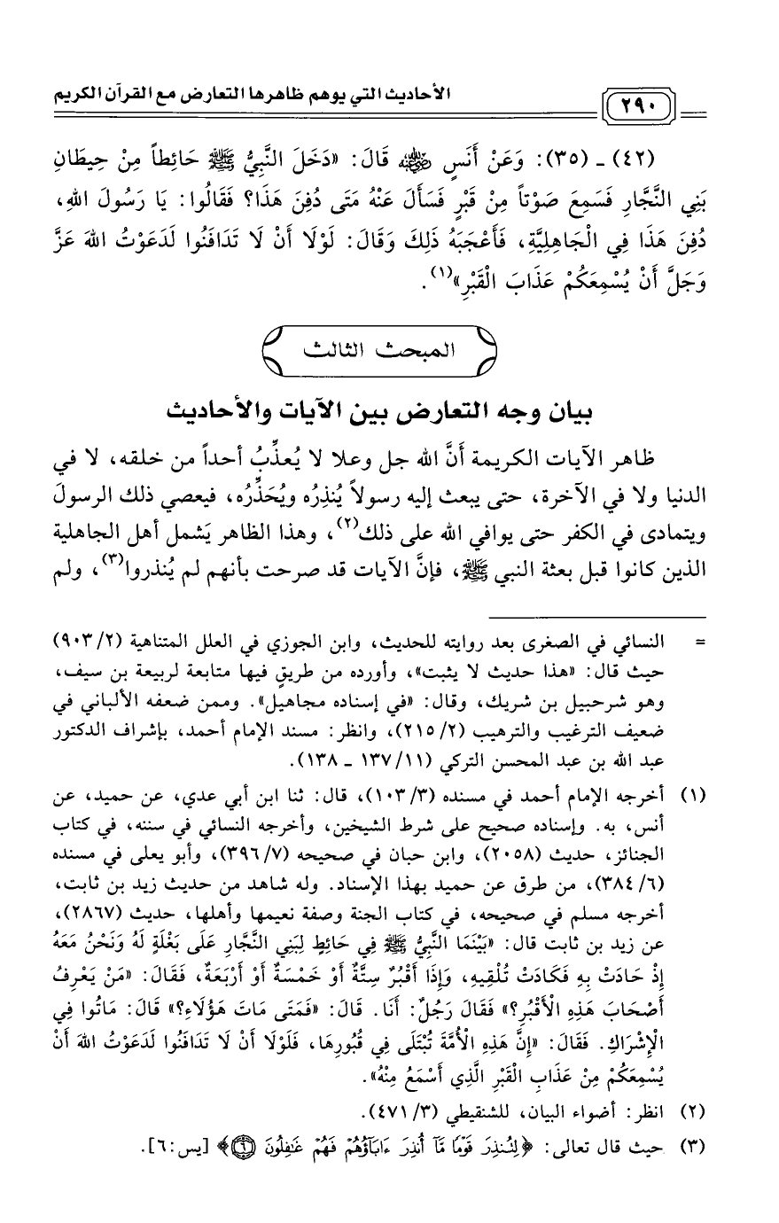 المبحث الثالث: بيان وجه التعارض بين الآيات والأحاديث: