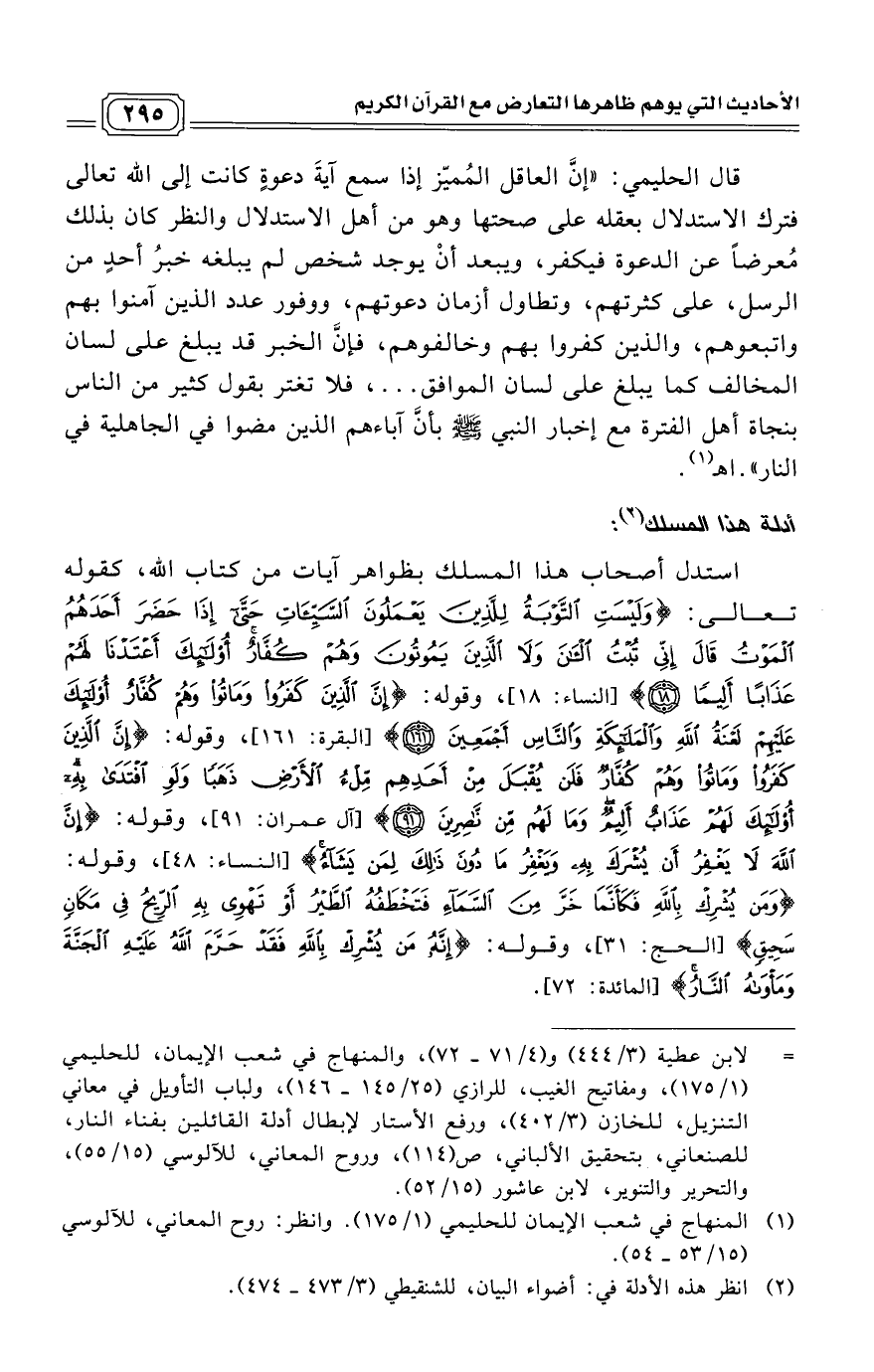 (¬1) المنهاج في شعب الإيمان للحليمي (1/ 175). وانظر: روح المعاني، للآلوسي (15/ 53 - 54).
