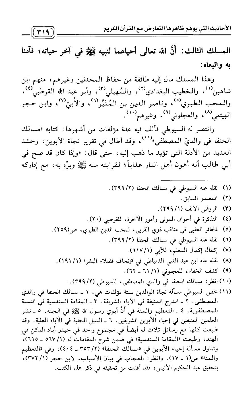 (¬11) انظر: مسالك الحنفا في والدي المصطفى، للسيوطي (2/ 399).