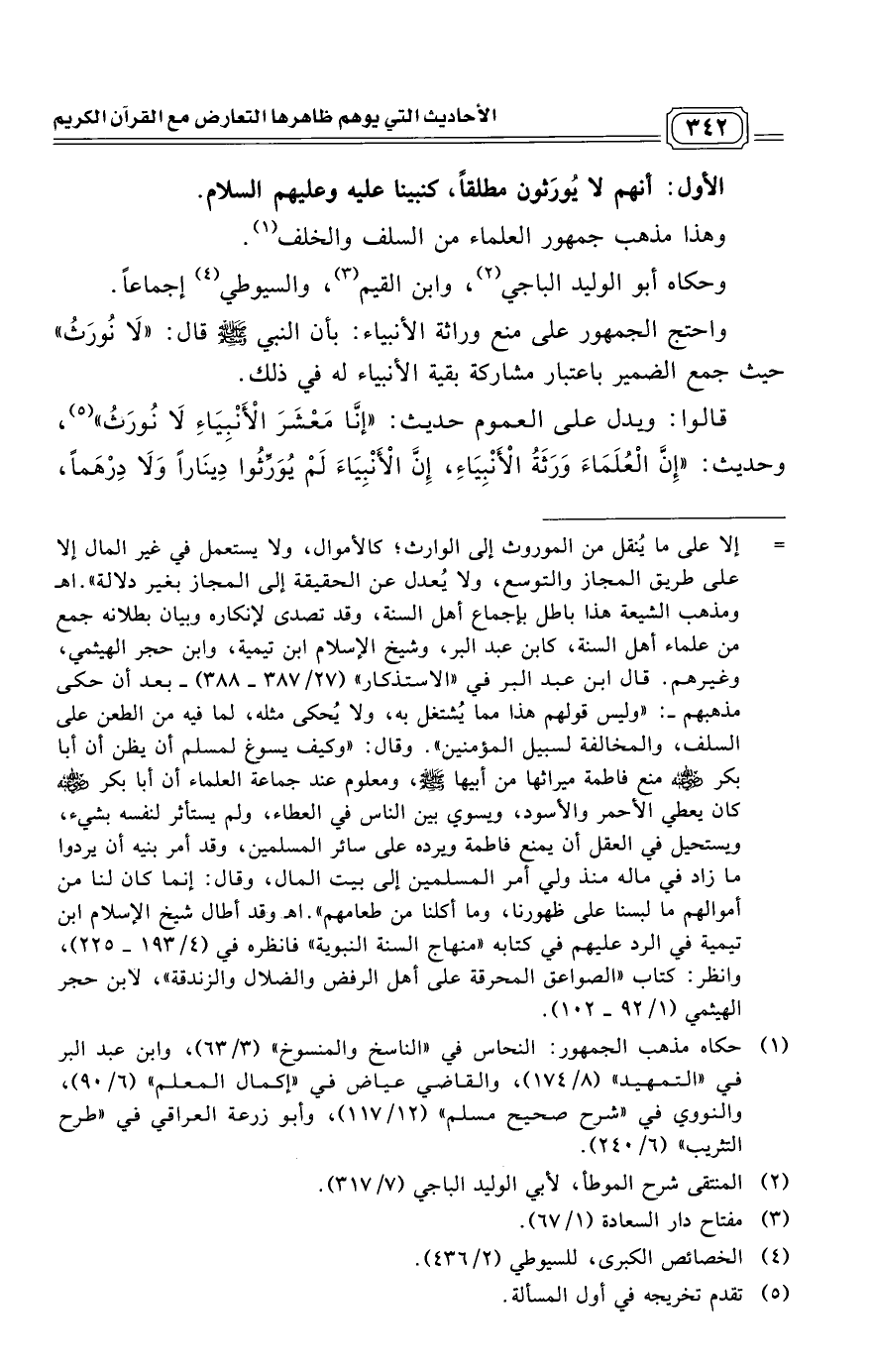 قالوا: ويدل على العموم حديث: "إنَّا مَعْشَرَ الْأَنْبِيَاءِ لاَ نُورَثُ" (¬6)، وحديث: "إِنَّ الْعُلَمَاءَ وَرَثَةُ الْأَنْبِيَاءِ، إِنَّ الْأَنْبِيَاءَ لَمْ يُوَرِّثُوا دِينَارًا وَلَا دِرْهَمًا،