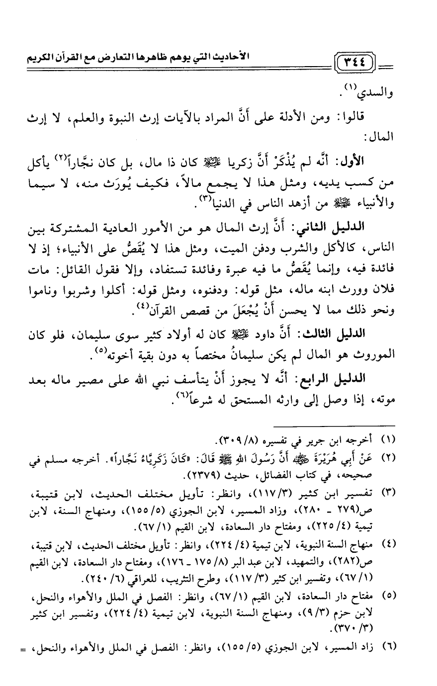 الدليل الرابع: أنَّه لا يجوز أَنْ يتأسف نبي الله على مصير ماله بعد موته، إذا وصل إلى وارثه المستحق له شرعاً. (¬6)