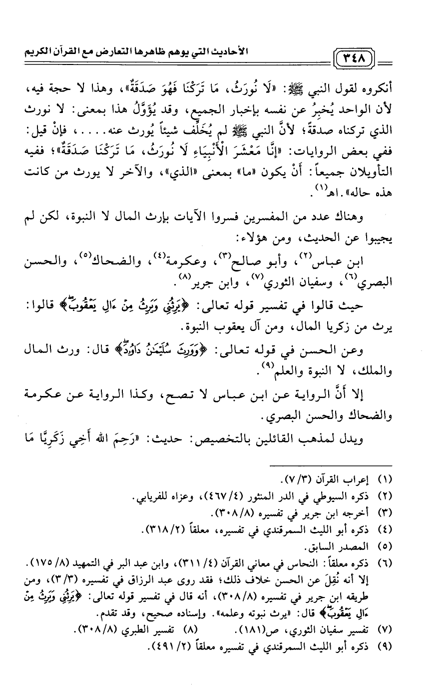 وهناك عدد من المفسرين فسروا الآيات بإرث المال لا النبوة، لكن لم يجيبوا عن الحديث، ومن هؤلاء: