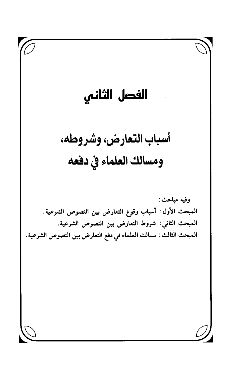 الفصل الثاني: أسباب التعارض، وشروطه، ومسالك العلماء في دفعه، وفيه مباحث: