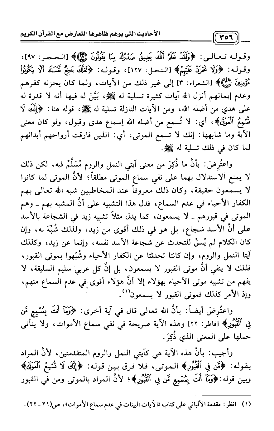 (¬1) انظر: مقدمة الألباني على كتاب "الآيات البينات في عدم سماع الأموات"، ص (21 - 22).