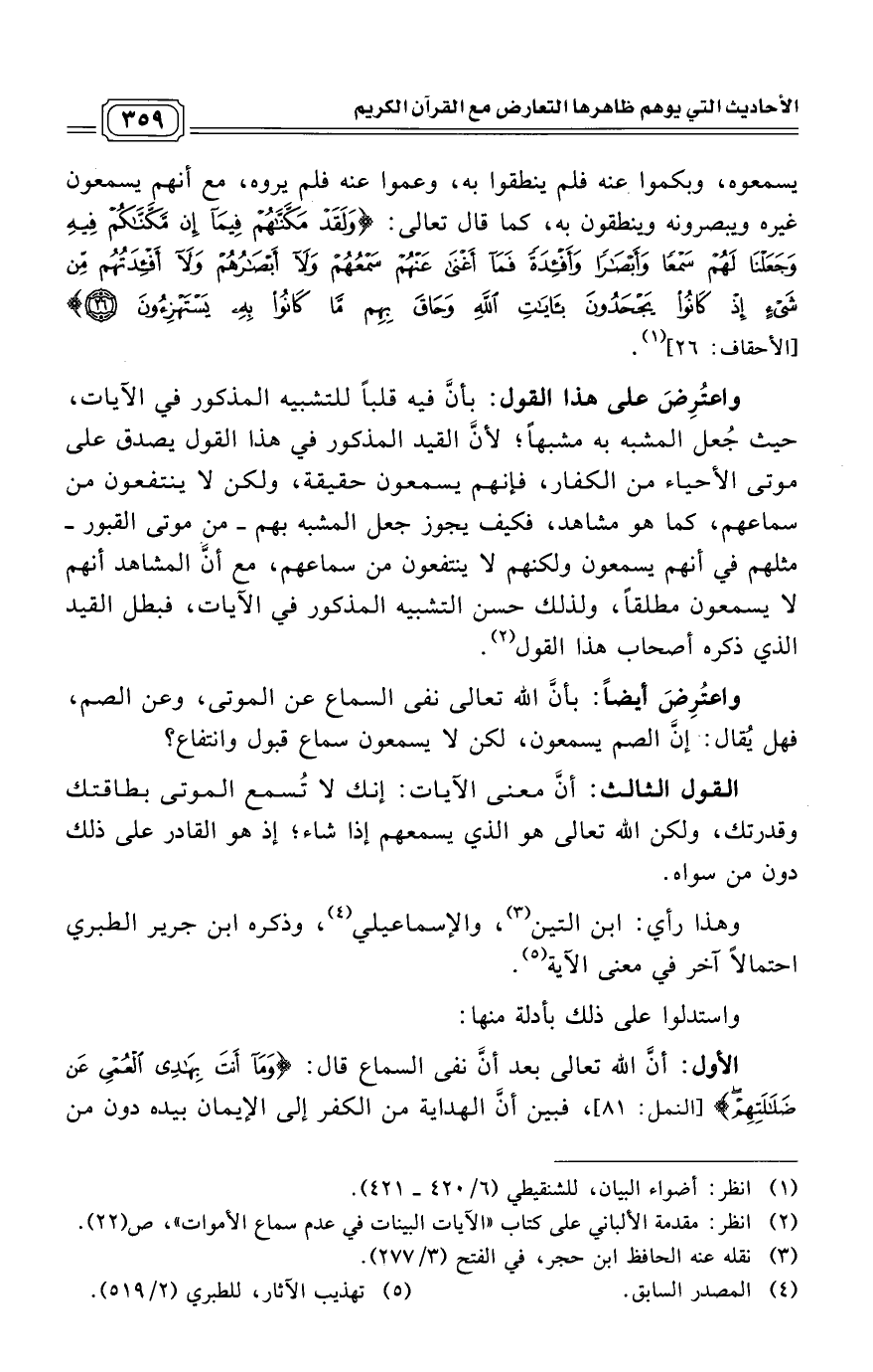 (¬2) انظر: مقدمة الألباني على كتاب "الآيات البينات في عدم سماع الأموات"، ص (22).