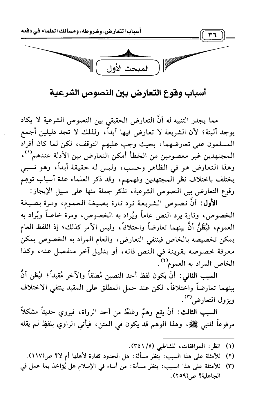 المبحث الأول: أسباب وقوع التعارض بين النصوص الشرعية: