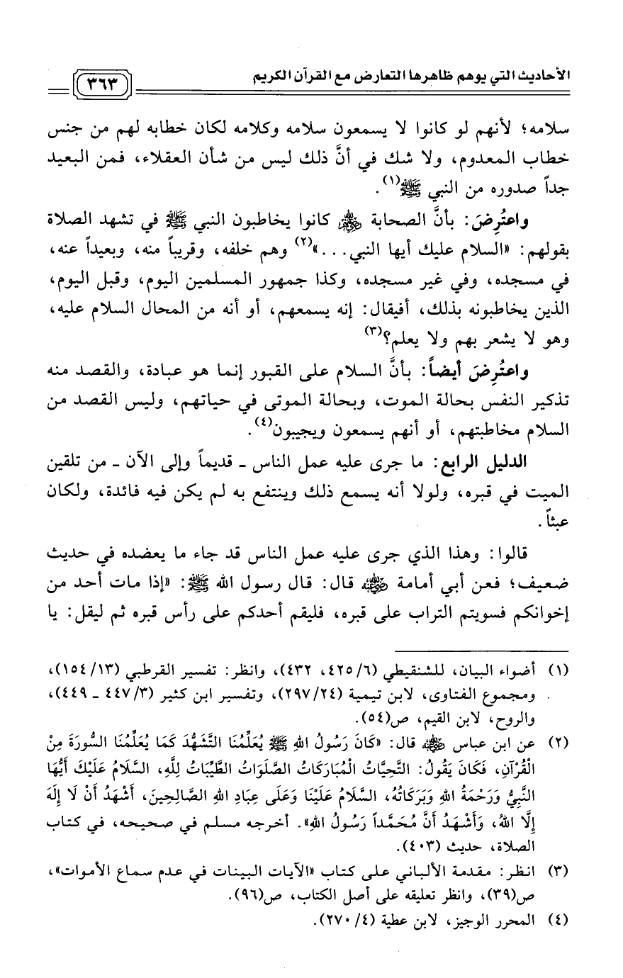 (¬3) انظر: مقدمة الألباني على كتاب "الآيات البينات في عدم سماع الأموات"، ص (39)، وانظر تعليقه على أصل الكتاب، ص (96).