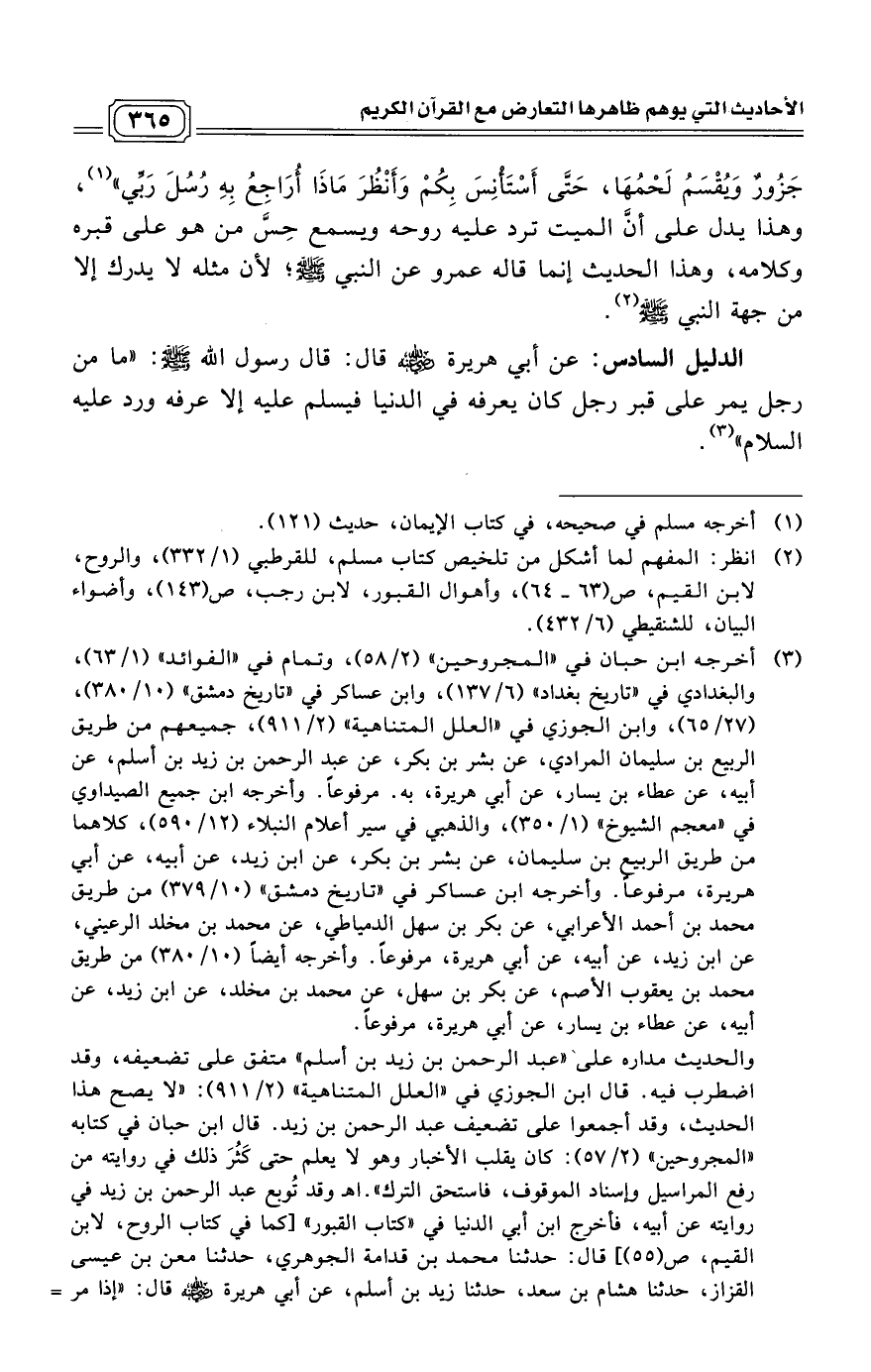 (¬2) انظر: المفهم لما أشكل من تلخيص كتاب مسلم، للقرطبي (1/ 332)، والروح، لابن القيم، ص (63 - 64)، وأهوال القبور، لابن رجب، ص (143)، وأضواء البيان، للشنقيطي (6/ 432).