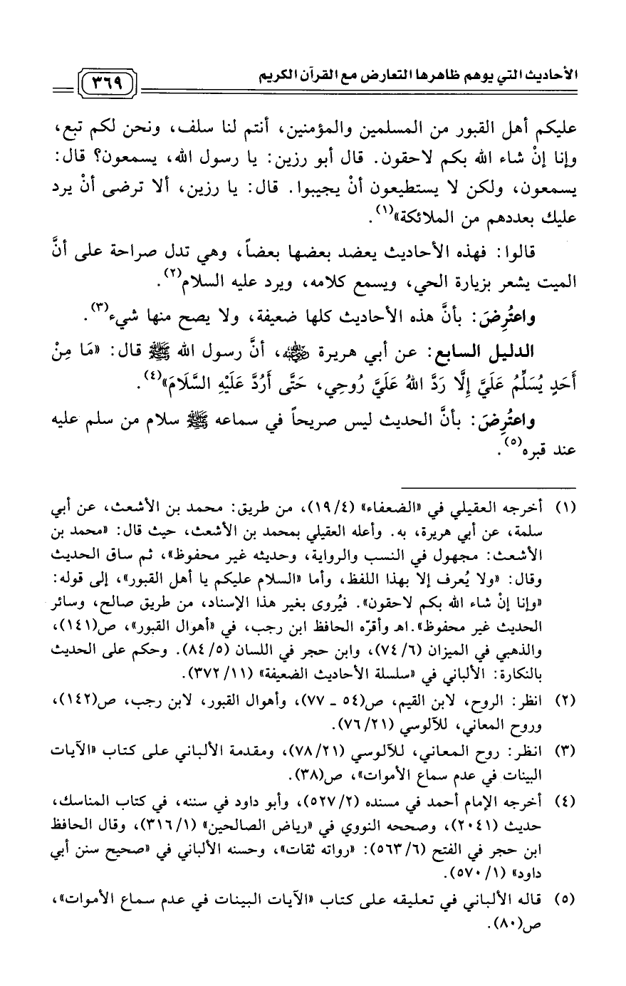(¬5) قاله الألباني في تعليقه على كتاب "الآيات البينات في عدم سماع الأموات"، ص (80).