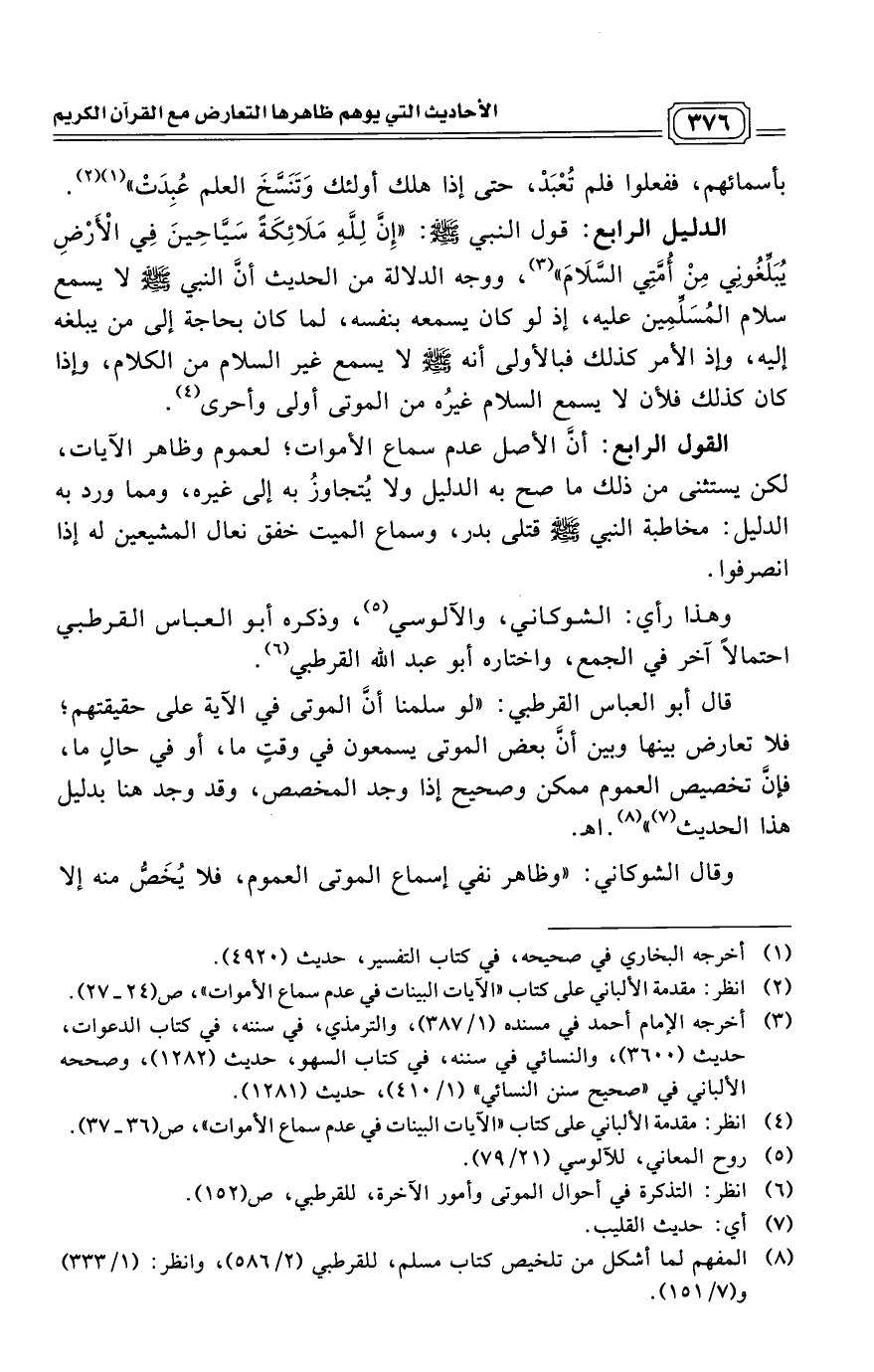 (¬4) انظر: مقدمة الألباني على كتاب "الآيات البينات في عدم سماع الأموات"، ص (36 - 37).